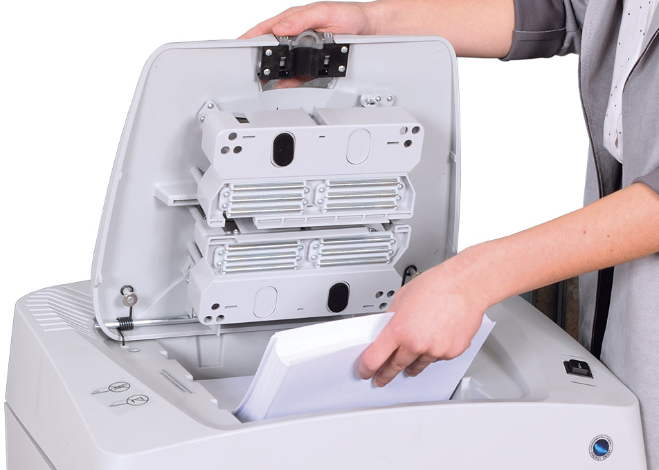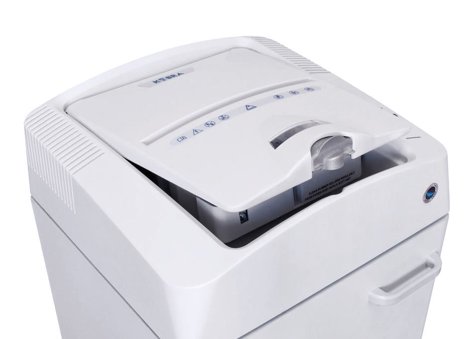 Engineered with Kobra’s exclusive oil-free system, the AF+1 C4 eliminates the need for blade lubrication and routine maintenance. A continuous duty motor supports extended operation without overheating, while features such as automatic start and stop, energy-saving standby mode, and automatic reverse ensure smooth and reliable performance. A separate manual feed slot handles 10 to 12 sheets, as well as staples, paper clips, credit cards, and optical media, making this shredder a dependable solution for professional office environments